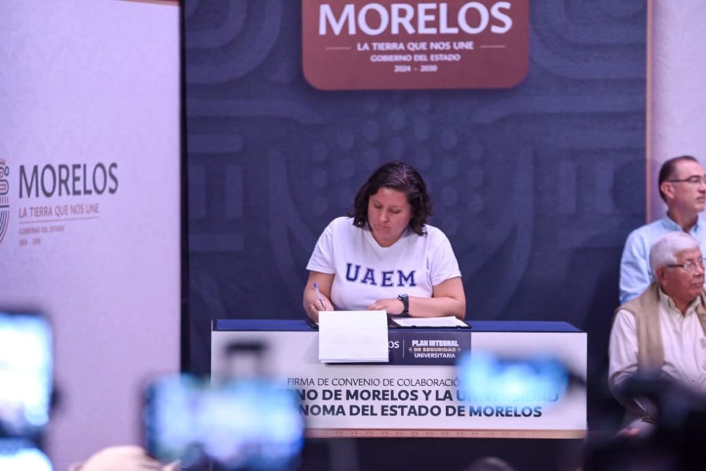 En este contexto, la mandataria estatal, al destacar que en Morelos se reconoce plenamente la autonomía universitaria, expresó que la función como Gobierno es clara: contribuir a que existan condiciones de seguridad, respeto y diálogo para toda la comunidad, y refirió que este convenio nace de la firme convicción de coordinación institucional con absoluto respeto a la vida interna de la UAEM.
