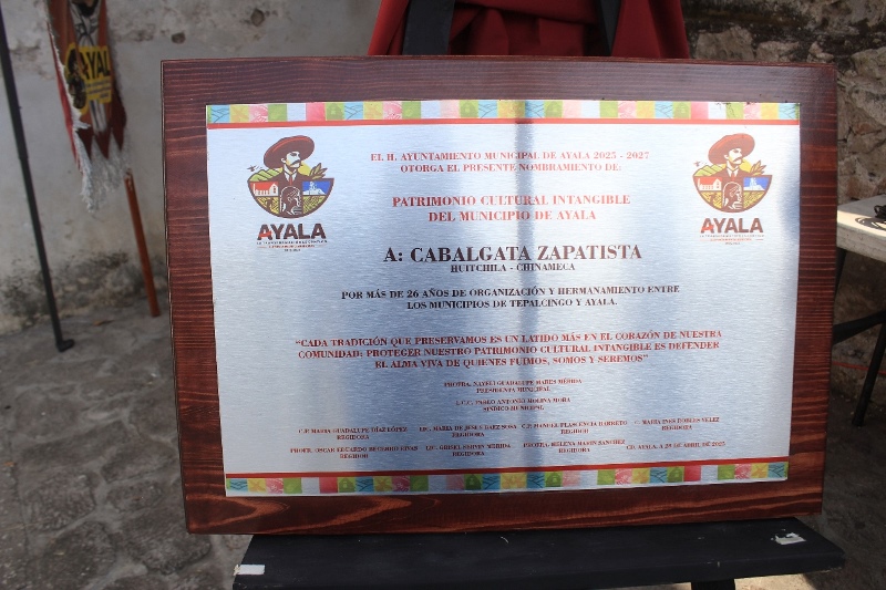 Dentro del marco del 107 Aniversario Luctuoso del general Emiliano Zapata Salazar se develó la placa distintiva, que distingue, valga la redundancia, al acto ecuestre como Patrimonio Cultural Intangible de Ayala. Este reconocimiento fortalece el valor histórico y cultural de una de las tradiciones más representativas del estado de Morelos.