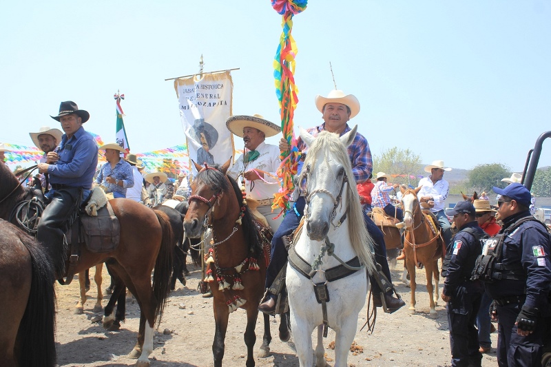 Ayala, Mor.- Con la participación de más de dos mil hombres y mujeres de a caballo se llevó a cabo la tradicional 27 edición de la Cabalgata Zapatista Huitchila-Chinameca, que se pone en escena pública, el último recorrido que realizó el general Emiliano Zapata Salazar un día antes de su muerte, el 10 de abril del año 1919 en Chinameca, Morelos.