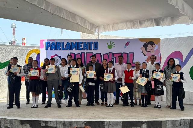 Yecapixtla, Mor.- Se llevó a cabo el Parlamento Infantil, donde el edil Heladio Rafael Sánchez Zavala, en compañía de su esposa y presidenta del Sistema DIF Yecapixtla, Yuridia Méndez Alanís, encabezaron el jurado calificador.