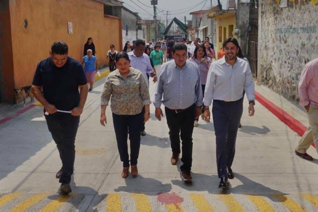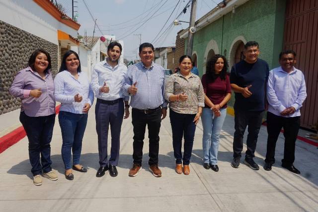Yecapixtla, Mor.- El alcalde Heladio Rafael Sánchez Zavala acompañado de su esposa y presidenta del Sistema DIF Municipal, Yuridia Méndez Alanís, encabezó el tradicional corte de listón de la rehabilitación a la calle Cuauhtémoc, ubicada en la colonia Centro.