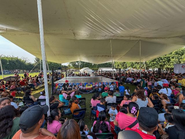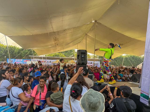 Durante el evento, niñas y niños disfrutaron de show de payasos, lucha libre y bocadillos, en un ambiente de alegría y convivencia familiar.
